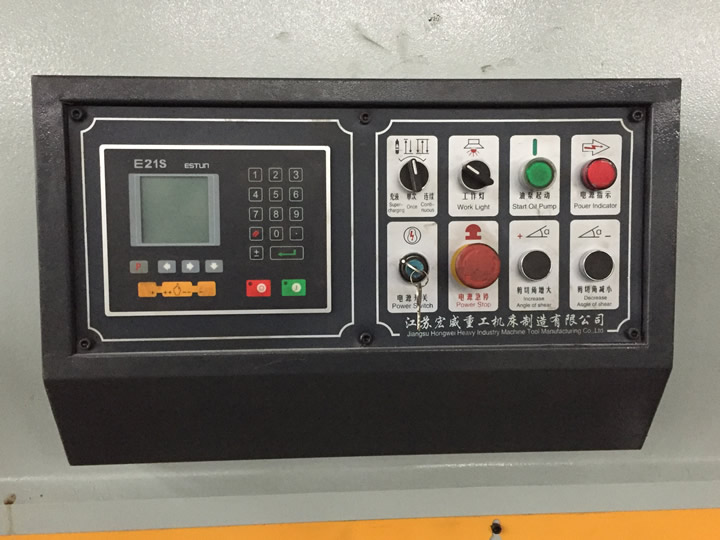 本機器具有高效率(中美合資埃斯頓產(chǎn)E21S專用剪板機控制系統(tǒng),數(shù)字程序輸入、輸出避免手繪校量。操作方便、性能可靠。)、低噪音(選用美國SUNNY公司產(chǎn)CP系列內(nèi)嚙合齒輪泵,該泵流量穩(wěn)定、噪聲低)、高精度(配有高精度絲杠、直線導(dǎo)軌,定位精度高)、完美平行度(采用全鋼焊接結(jié)構(gòu),綜合處理(振動時效)消除內(nèi)應(yīng)力,有很好的剛性與穩(wěn)定性;整個機架剛性好、外形美觀。整機由齊二機床產(chǎn)數(shù)控落地鏜銑床整體加工,剪切角可調(diào),剪切無毛刺。通過電氣和液壓系統(tǒng)協(xié)調(diào)控制,達到理想的剪切效果。)、低故障率(機床結(jié)構(gòu)設(shè)計嚴(yán)謹(jǐn),中高端配置,液壓傳動,蓄能器液壓回程,工作平穩(wěn)可靠,噪音低、故障率低)、安全系數(shù)高(機床上設(shè)有安全開關(guān)、急停按鈕和防護裝置)等特點。詳細配置及參數(shù)請咨詢:15862738988.